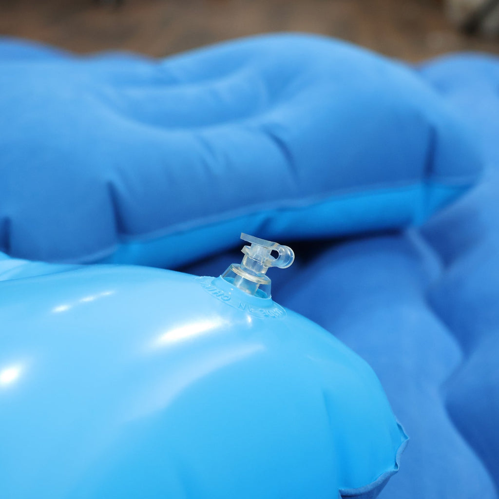 Includes 2 inflatable pillows, an air pump with nozzles, and a patch kit for emergency repairs.